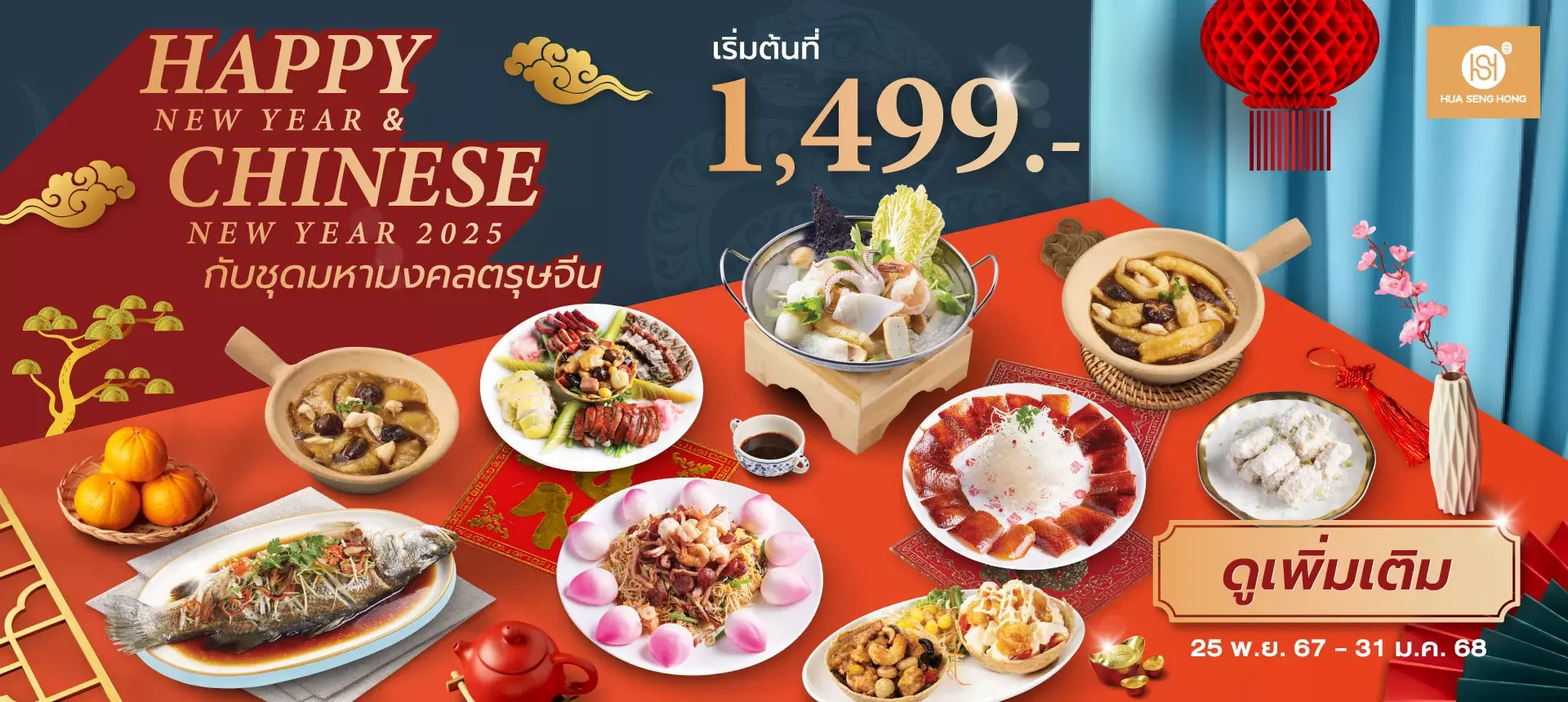 ฮั่วเซ่งฮงขอเชิญคุณและครอบครัวมาร่วมฉลองปีใหม่และตรุษจีน 2025 ด้วย 4 ชุดมหามงคล ที่จัดเต็มทั้งความอร่อยและความหมายมงคล พร้อมเริ่มต้นปีแห่งความสุข ความโชคดี และความเจริญรุ่งเรืองไปด้วยกัน!