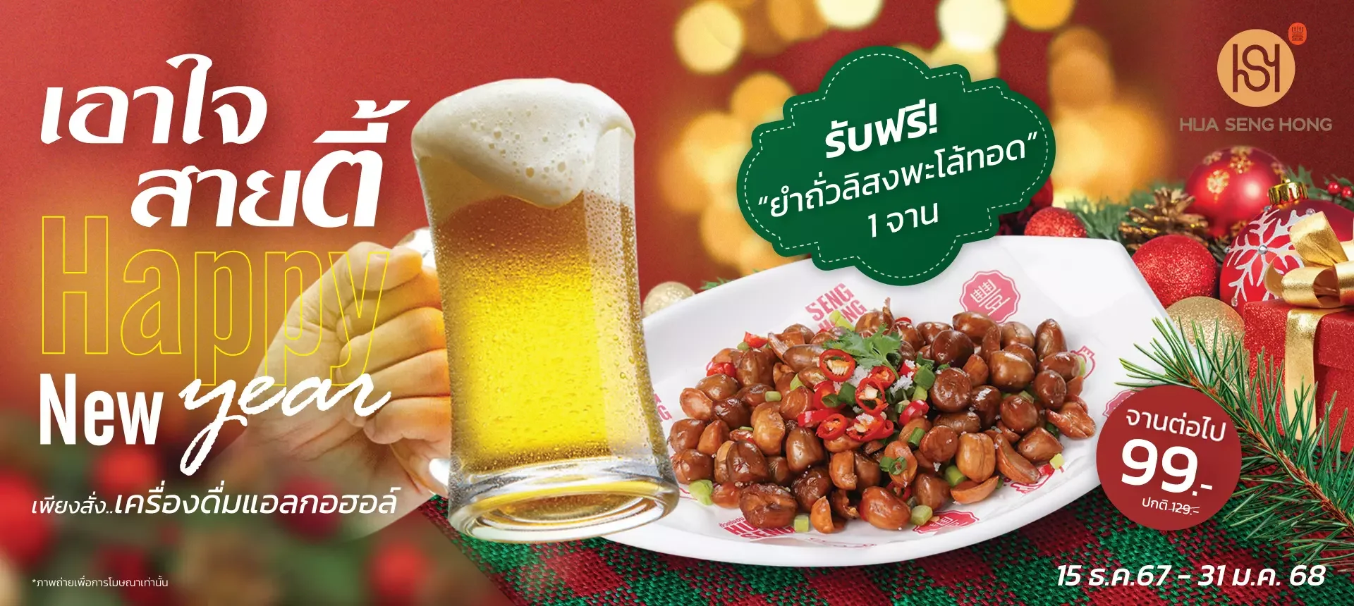 ดื่มชิลล์ พร้อมอร่อยเต็มรสชาติ กับโปรพิเศษที่ฮั่วเซ่งฮง เมื่อคุณสั่งเครื่องดื่มแอลกอฮอล์ที่ร้าน รับทันที ยำถั่วลิสงพะโล้ทอด 1 จาน ฟรี! เมนูของว่างสุดพิเศษที่คัดสรรมาเพื่อเข้ากับเครื่องดื่มของคุณ มูลค่า 129 บาท หรือสั่งซื้อเพิ่มในราคาพิเศษเพียง 99 บาท