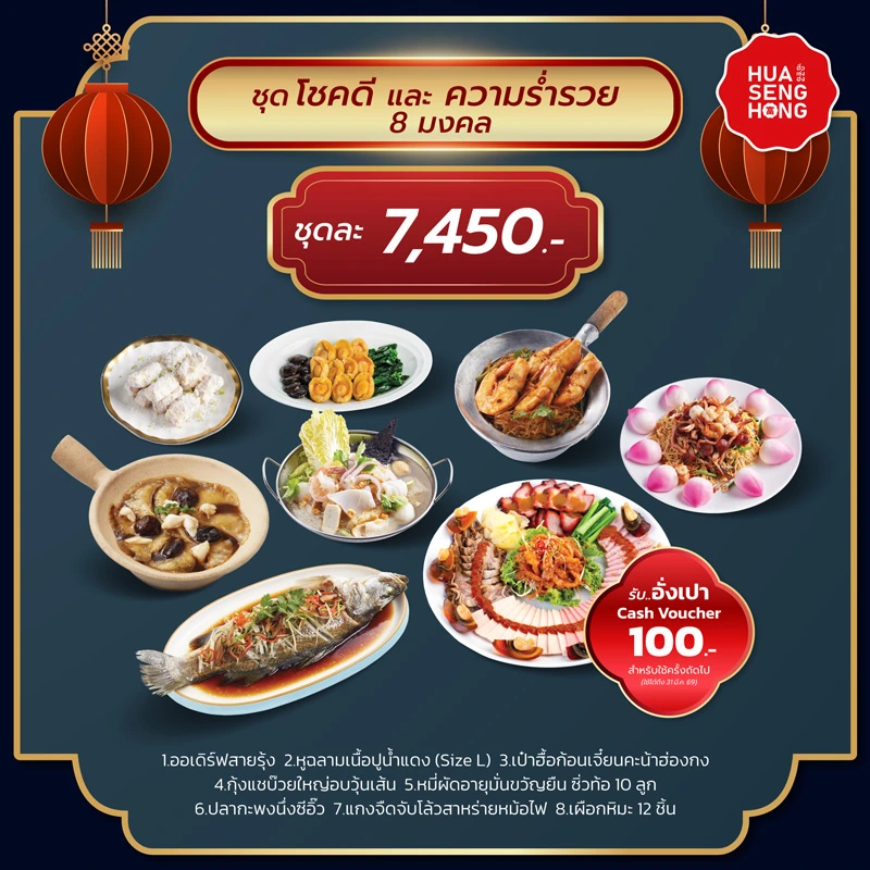 ยกระดับมื้อรวมญาติให้เต็มไปด้วยความโชคดีด้วยชุดอาหาร 8 รายการมงคล ที่คัดสรรเมนูพรีเมียมมาเพื่อเสริมความร่ำรวยและความสมบูรณ์พูนสุขโดยเฉพาะค่ะ