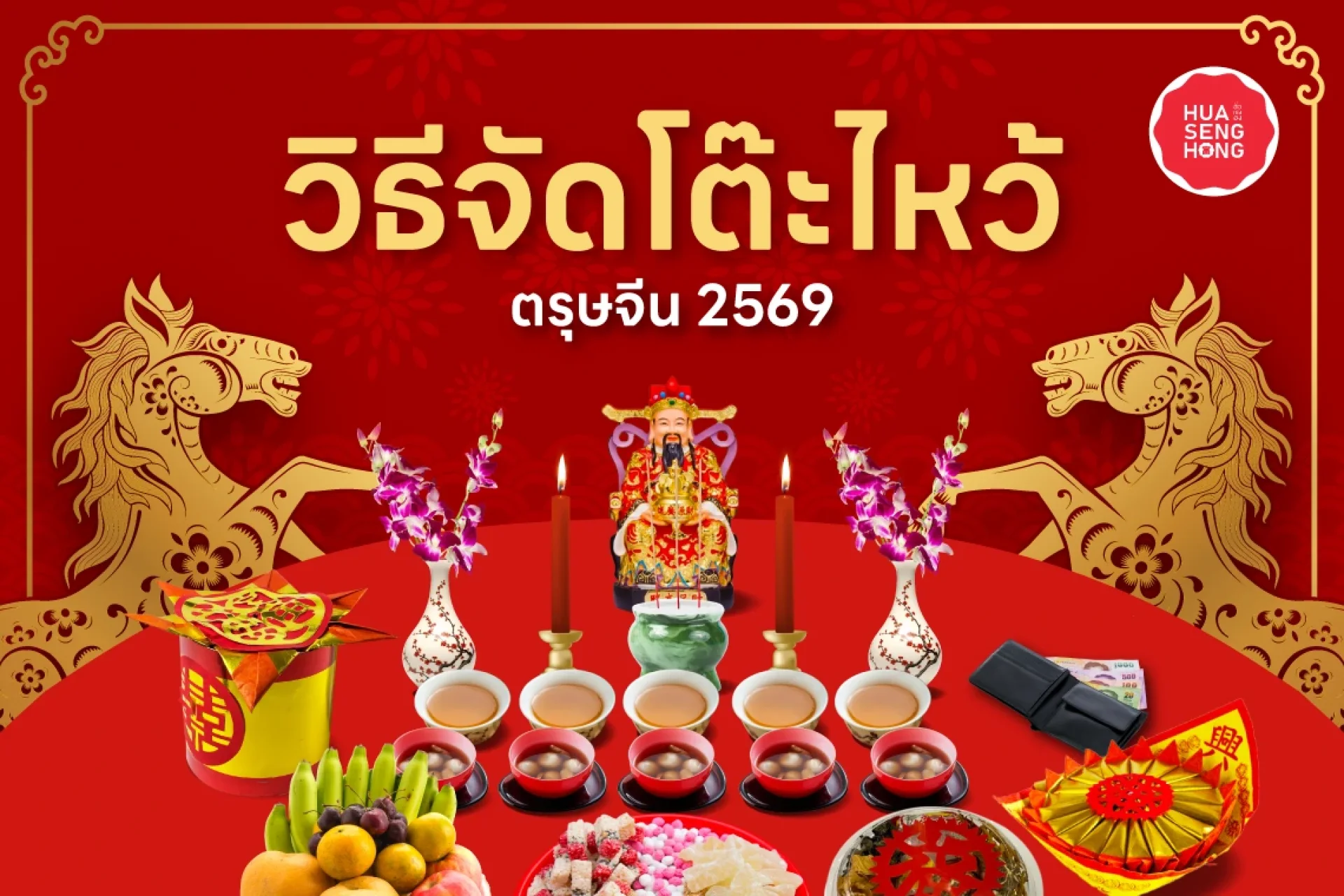 วันนี้ฮั่วเซ่งฮงได้รวบรวมวิธีการจัดโต๊ะไหว้ ตรุษจีน 2569 ที่ถูกต้อง ไม่ว่าจะเป็นการ ไหว้เจ้า ไหว้บรรพบุรุษ หรือ ไหว้เทพเจ้าไฉ่ซิงเอี้ย พร้อมทั้ง วิธีเลือกของไหว้ตรุษจีน ที่ช่วยเสริมดวงชะตาให้อยู่ดีมีสุข เฮง ๆ ปัง ๆ ตลอดปี