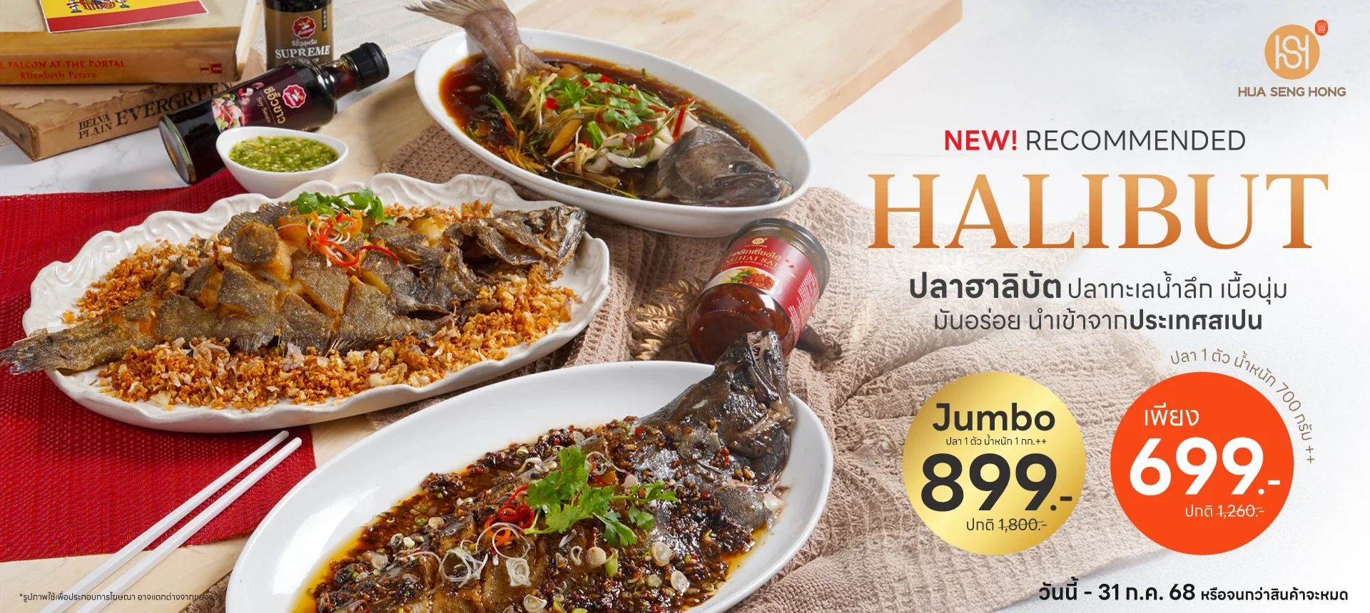 ฮั่วเซ่งฮงชวนคุณมาสัมผัสความอร่อยระดับพรีเมียมกับโปรโมชั่นปลาฮาลิบัต สัญชาติสเปน!! ปลาทะเลน้ำลึกเนื้อนุ่ม มัน อร่อย คัดสรรคุณภาพดี มีจำนวนจำกัด ในราคาพิเศษเริ่มต้นเพียง 699 บาท (จาก 1,260 บาท) สำหรับ 700 กรัม หรือ 899 บาท (จาก 1,800 บาท) สำหรับ 1 กิโลกรัม เฉพาะช่วงนี้เท่านั้น