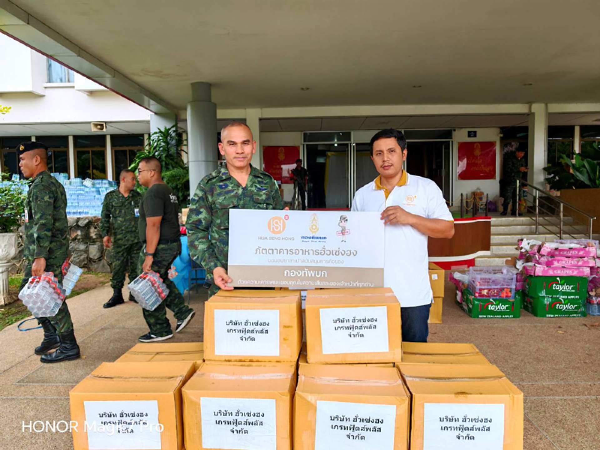 จากสถานการณ์ความไม่สงบในพื้นที่ชายแดนที่ทำให้ประชาชนต้องอพยพออกจากพื้นที่ ฮั่วเซ่งฮงขอร่วมเป็นส่วนหนึ่งในการส่งมอบ พลังใจ ผ่านการสนับสนุนอาหารพร้อมทานให้กับ กองบัญชาการมณฑลทหารบกที่ 25 เพื่อกระจายต่อไปยัง ศูนย์พักพิงชั่วคราวสำหรับผู้ได้รับผลกระทบ รวมถึงเหล่าทหารหาญที่ปฏิบัติหน้าที่อย่างเสียสละในการดูแลความปลอดภัยชายแดน