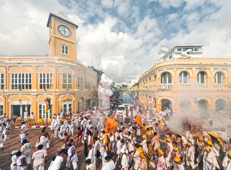 ที่ภูเก็ตนี่จัดใหญ่ทุกปี มีขบวนแห่สุดอลังการ อิ้วเก้ง (พิธีแห่พระ), ม้าทรง, ลุยไฟ และพิธีกรรมศักดิ์สิทธิ์มากมาย ซึ่งเป็นต้นกำเนิดของเทศกาลกินเจในบ้านเราเลย