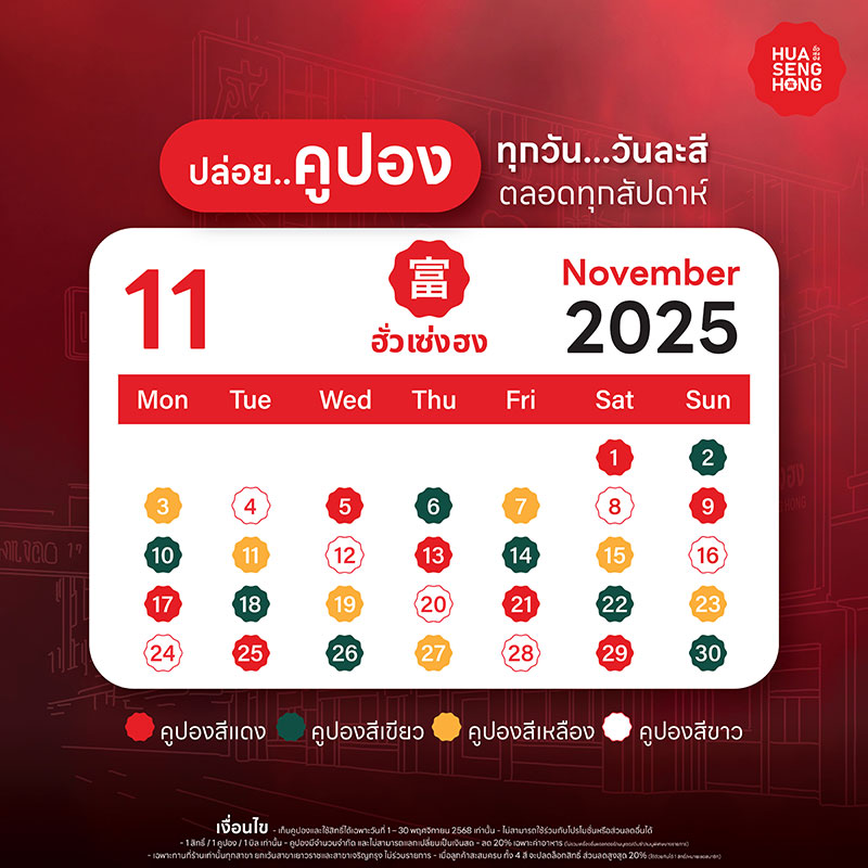 - เก็บคูปองและใช้สิทธิ์ได้เฉพาะ: 1 พ.ย. 2568 - 30 พ.ย. 2568