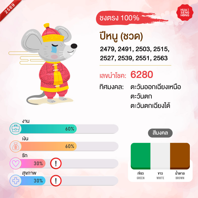 | ปีหนู (ชวด) | ชงตรง (เต็ม 100%) | เปลี่ยนแปลงครั้งใหญ่ รุนแรงที่สุดในปีชงทั้งหมด |